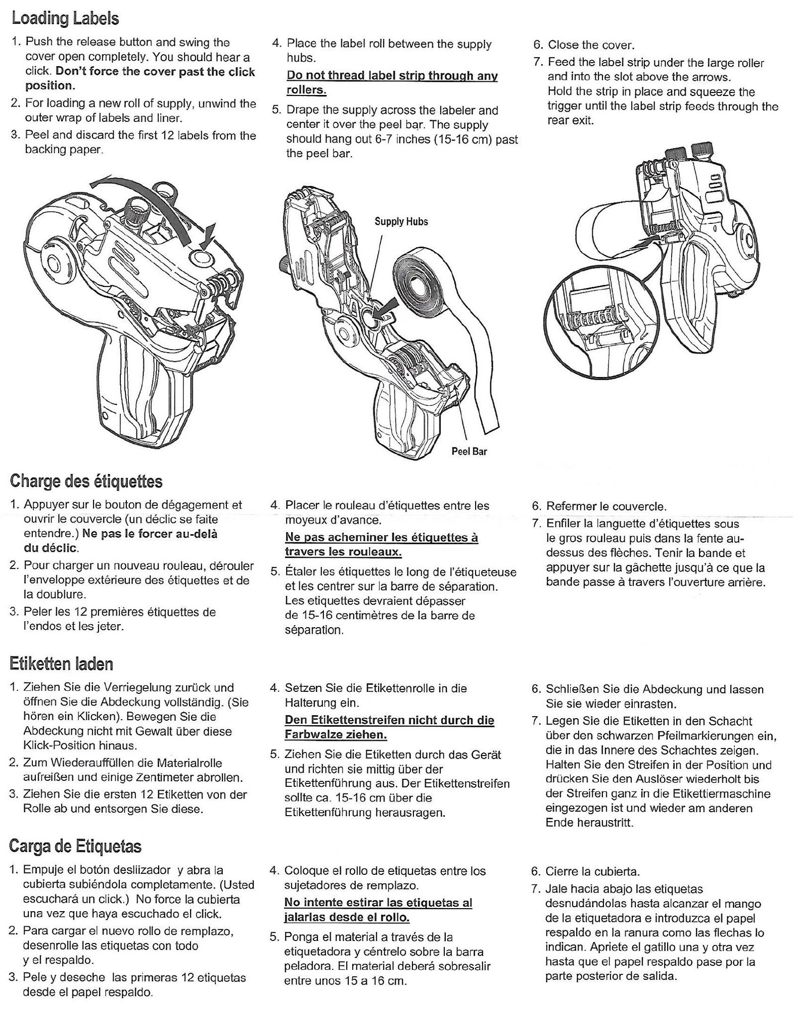 How to load a ink roller in a Garvey Price Gun - YouTube Loading a ink roller in a Garvey price label gun, while hanging out on our pontoon boat.To purchase Ink Rollers, please go to this page: ... How to Load a Pricing Gun | Bizfluent Stuff the roll through the mounts until they catch in the center hole. Pull the tape over the track in the upper part of the gun, and pull the leader off the track so it extends past the point of the gun. Close the upper door over and snap it shut. Thread the leader through the intake rollers; there should be a pair of arrows pointing to them.