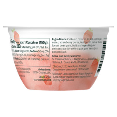 The Best Yogurt Brands (& The Worst) For Your Health - Eat This Not That Chobani Greek Yogurt, 0%, Strawberry 5.3 oz serving: 110 calories, 0 g fat (0 g saturated fat), 65 mg sodium, 16 g carbs (<1 g fiber, 13 g sugar), 11 g protein, Calcium 10% Chobani's flavored Greek yogurts are delicious because they're very sweet.