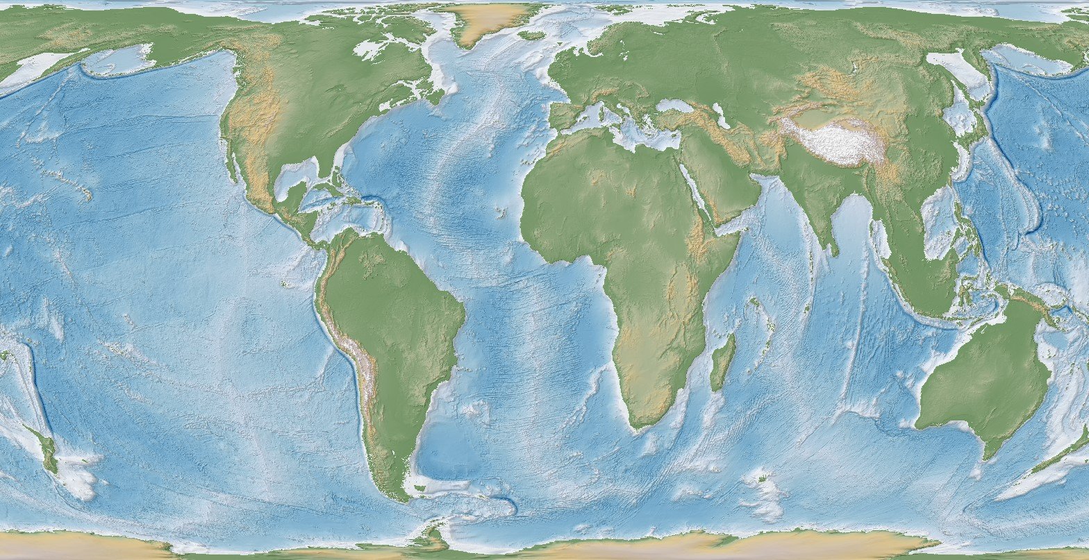 Earth's Topography and Bathymetry - No Labels - World Maps Online Though the map is printed on flat media with no raised relief, a visual relief effect is created by the use of shaded relief to portray the Earth's 3D surface. No labeling or boundaries are delineated on this map, making it an image of today's world, free from politics. Questions about Earth's Topography and Bathymetry - No Labels?