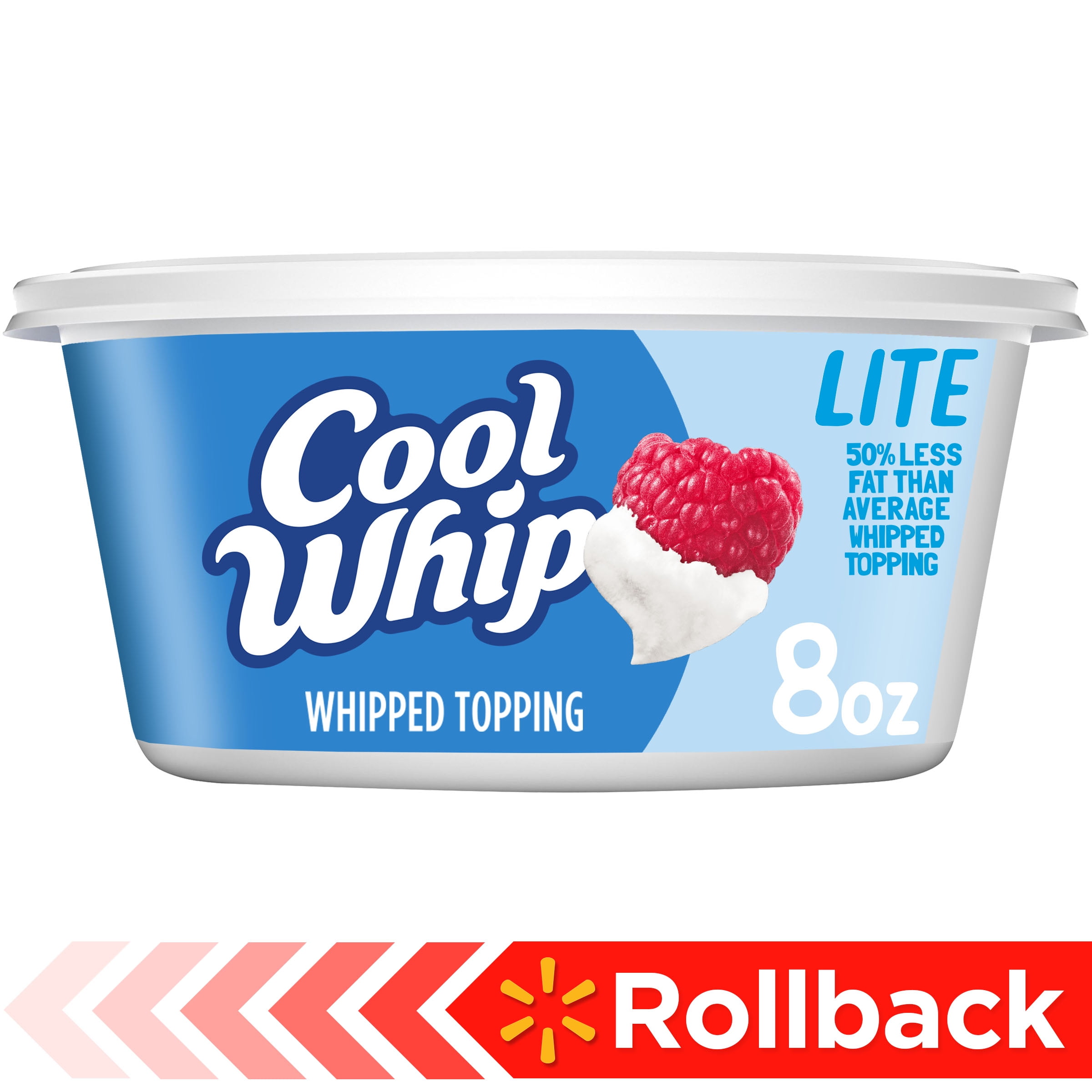 Cool Whip Lite Frozen Whipped Topping - 8oz : Target One 8 oz tub of Cool Whip Lite Whipped Topping. Cool Whip Lite Whipped Topping is perfect as a topping or recipe ingredient. One-of-a-kind, creamy addition to any dessert creation. Light whipped topping with 50% less fat than average whipped topping. No trans fat with a total of 1 g. of fat per serving. Top ice cream, pie, cheesecake or hot cocoa.