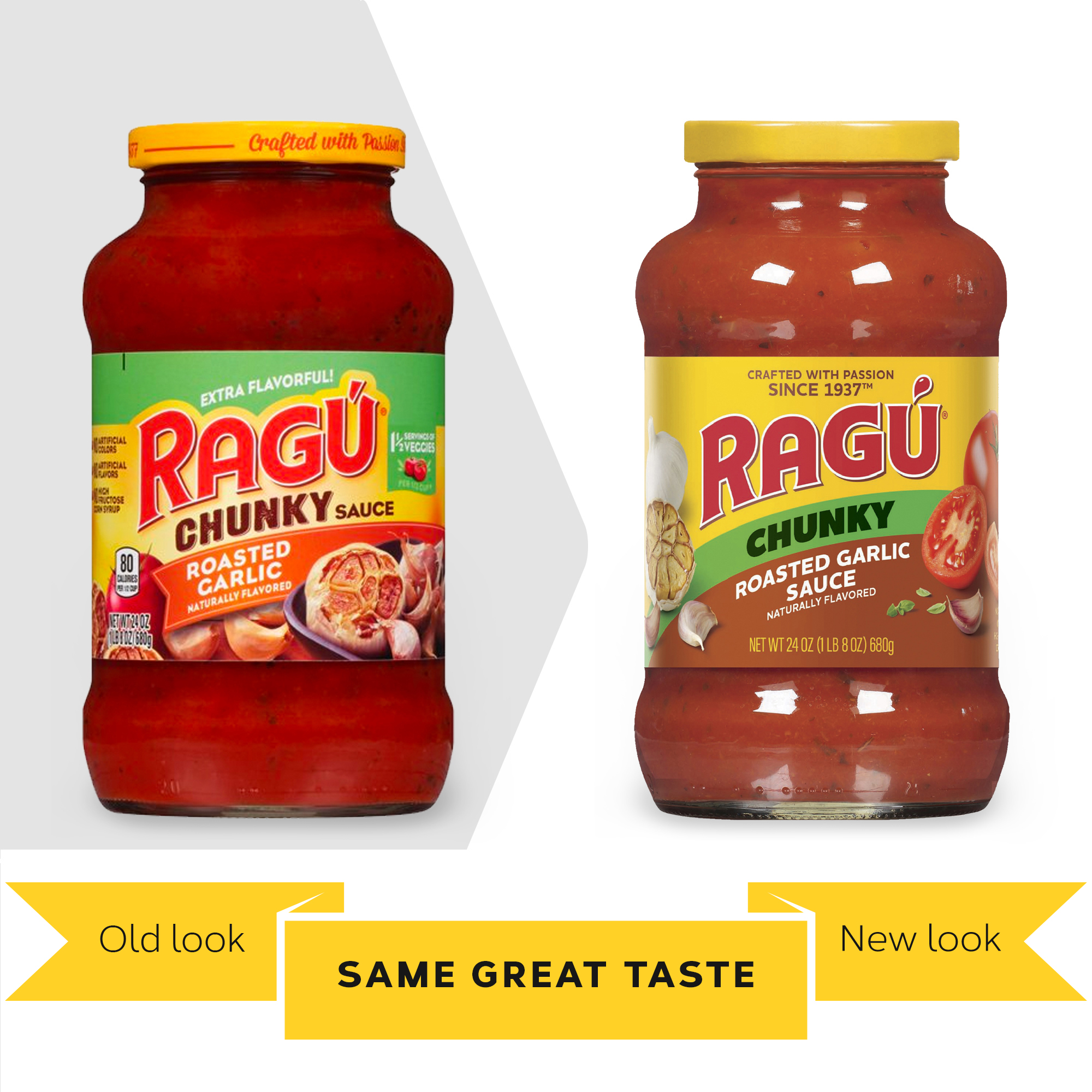 Simply Traditional Pasta Sauce | RAGÚ® Made with olive oil Has no sugar added Simply delicious flavor Available in 24oz jars *Not a low calorie food. See Nutrition Information for sugar, sodium & calories. Tomato Puree (Water, Tomato Paste), Olive Oil, Salt, Onions, Carrots, Dehydrated Onions, Garlic Powder, Onion Powder, Spices. Shop Now Nutritional Information