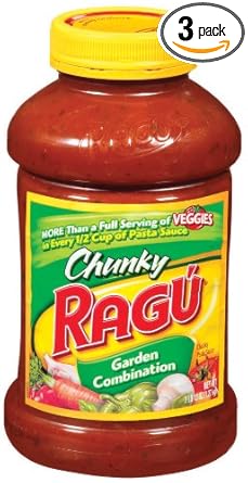 Ragu Chunky Garden Combination Pasta Sauce - H-E-B 45 oz. $3.52 ($0.08/oz) Product description. Great tasting! 2 servings of veggies in every 1/2 cup of sauce. Easy-open cap. America's favorite pasta sauce. 100% natural. All ingredients are natural or naturally derived. A good source of vitamins A and C. Preparation instructions.