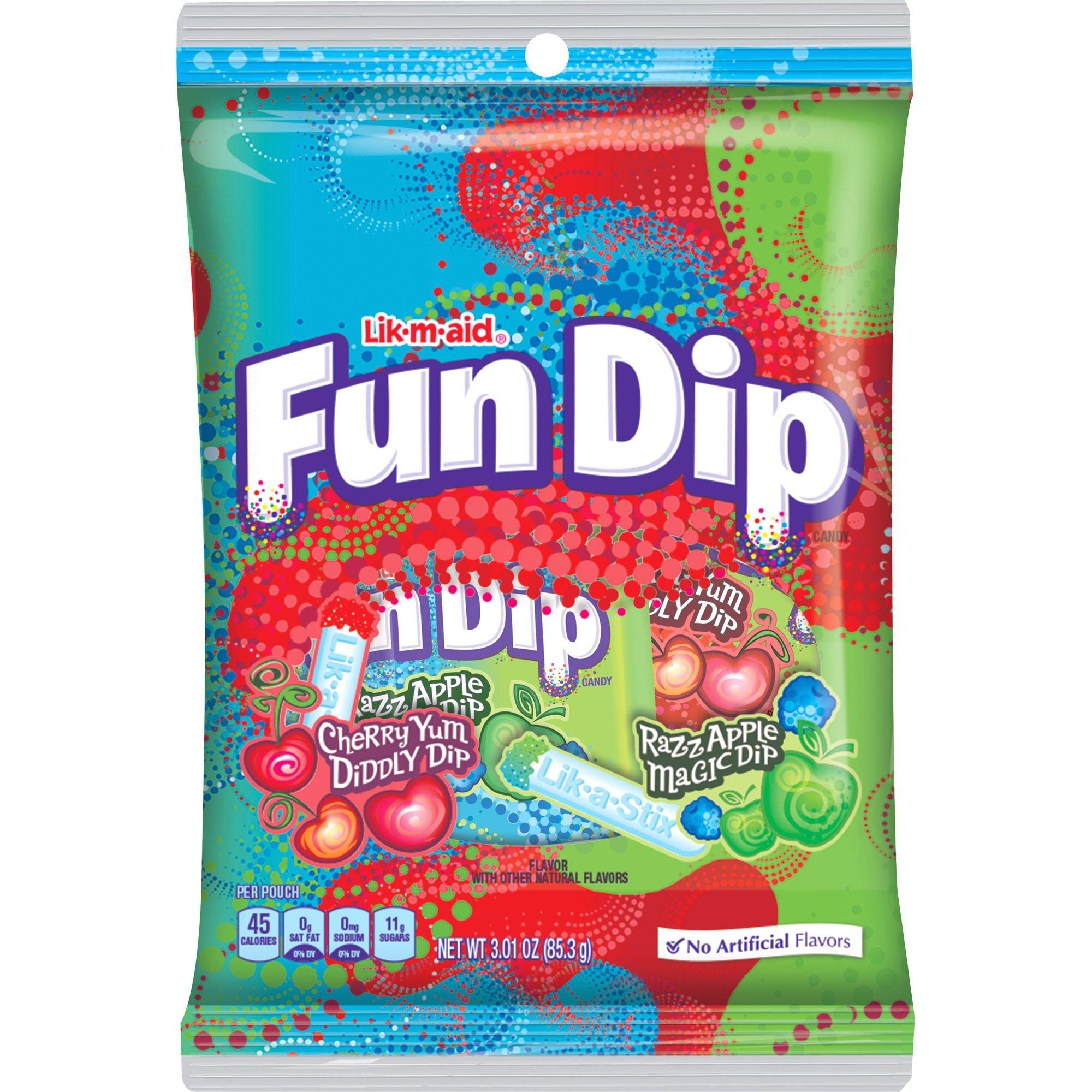 Fun DIP Lik M Aid 48ct Other Candy Gum Chocolate Food Beverages ... - eBay Calories per 100 g/mL. Multicolor. Regional Cuisine/Region. American. Calories per Serving. ... item 7 Lik-M-Aid Fun Dip Food,Candy,Powder,Fun,48c 20900166 Ferrara Candy Co Lik-M-Aid Lik-M-Aid Fun Dip Food,Candy,Powder,Fun,48c 20900166 ... The kids love this candy and dip stick combo. Verified purchase: Yes | Condition: New. 5 out of 5 stars ... Fun Dip (History, FAQ, Nutrition & Pictures) - Snack History The Year Fun Dip Was Invented. Fun Dip was we know it now was invented in the year 1973 after being re-branded and re-imagined. The predecessor to Fun Dip, Lik-M-Aid, was first invented around the year 1952 and was itself a re-branded and re-imaged product from the drink mix called Fruzola Jr that was produced around the 1940s.