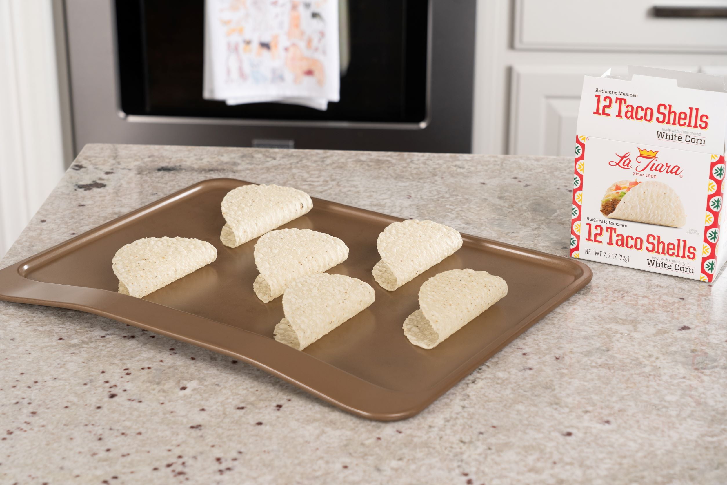 La Tiara Taco Shells - Shop Tortillas at H-E-B La Tiara Taco Shells 12 ct $1.83 ($0.67/oz) Icon details Product description Made with stone ground yellow corn. Our taco shells are ready to fill and serve but even better when heated! Preparation instructions Remove all packaging. Preheat oven to 200 degrees F. Separate on baking sheet. Bake for 5 minutes.