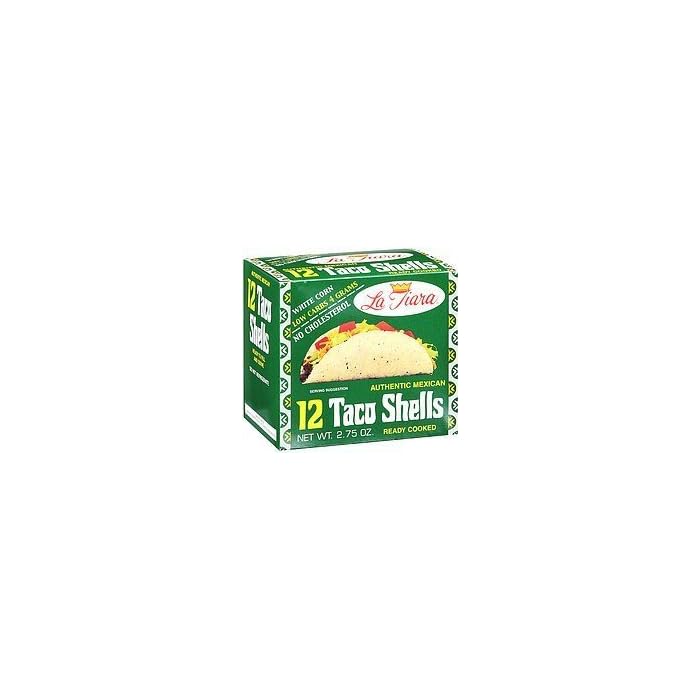 La Tiara Taco Shells, 36 count, 8.4 oz - Walmart.com TACO SHELLS Brand La Tiara Assembled Product Weight 0.475 POUNDS Container Type Box Food Form Shell Manufacturer Part Number 0007213455569 Model 555692 Height 5.30 Retail Packaging BOX CRDBR Grain Type Corn Assembled Product Dimensions (L x W x H) 3.50 x 10.50 x 5.25 Inches Directions Instructions Do Not Refrigerate Ready to Fill and Serve Warranty La Tiara White Corn Taco Shells - Shop Tortillas at H-E-B La Tiara White Corn Taco Shells 12 ct $1.83 ($0.16/ct) Product description The shells in this box are made from white kernels of corn, processed the authentic Mexican way, stone ground, with all of Mother Nature's own nutrients retained. Do not be fooled by imitation taco shells. Ready to fill and serve. Preparation instructions