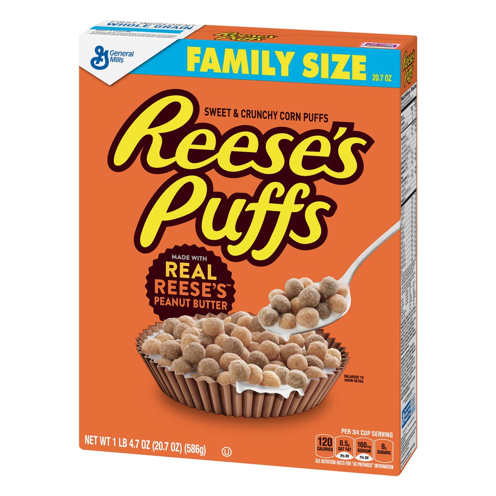 Reese's Puffs Cereal, Chocolatey Peanut Butter, with Whole Grain, 20.7 ... * The % Daily Value (DV) tells you how much a nutrient in a serving of food contributes to a daily diet. Calories per gram: Fat 9 • Carbohydrate 4 • Protein 4 Product details REESE'S PUFFS cereal brings together delicious real REESE'S peanut butter and HERSHEY'S cocoa on sweet crunchy corn puffs kids and teens love.