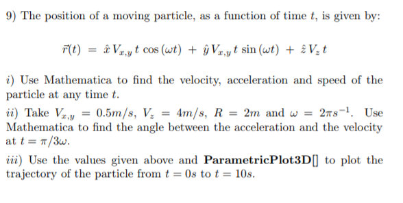 Mathematica Project - Position, Velocity, and Acceleration - plotting ... Mathematica Project - Position, Velocity and Acceleration A rocket is fired vertically upward into the air from a launching platform 100 ft above the ground. The platform is then retracted, and the rocket is allowed to fall to the ground. The height (in ft) of the rocket relative to the ground t seconds after launch is given by: