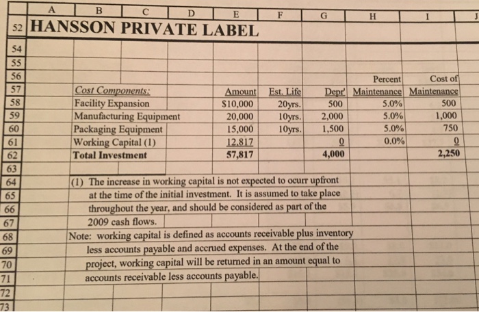 Hansson Private Label, Inc.: Evaluating An Expansion - Casehero Hansson Private Label, Inc.: Evaluating An Expansion - Case Solution Do you recommend Hansson Private Label, Inc. proceed with the investment? Why or why not? Estimate the project's NPV. (Be sure to explain why you used the numbers you used as there are choices you will be made doing this.