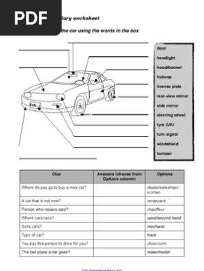31 Car parts English ESL worksheets pdf & doc - iSLCollective 31 Car parts English ESL worksheets pdf & doc SORT BY Most popular TIME PERIOD All-time PhilipR Let's Talk About Education This worksheet contains 18 conversation cards and a matching exercise. The cards can be cut out if desired and be used as conversation questions. Can be used wi... 40579 uses PhilipR Let's Talk About Crime